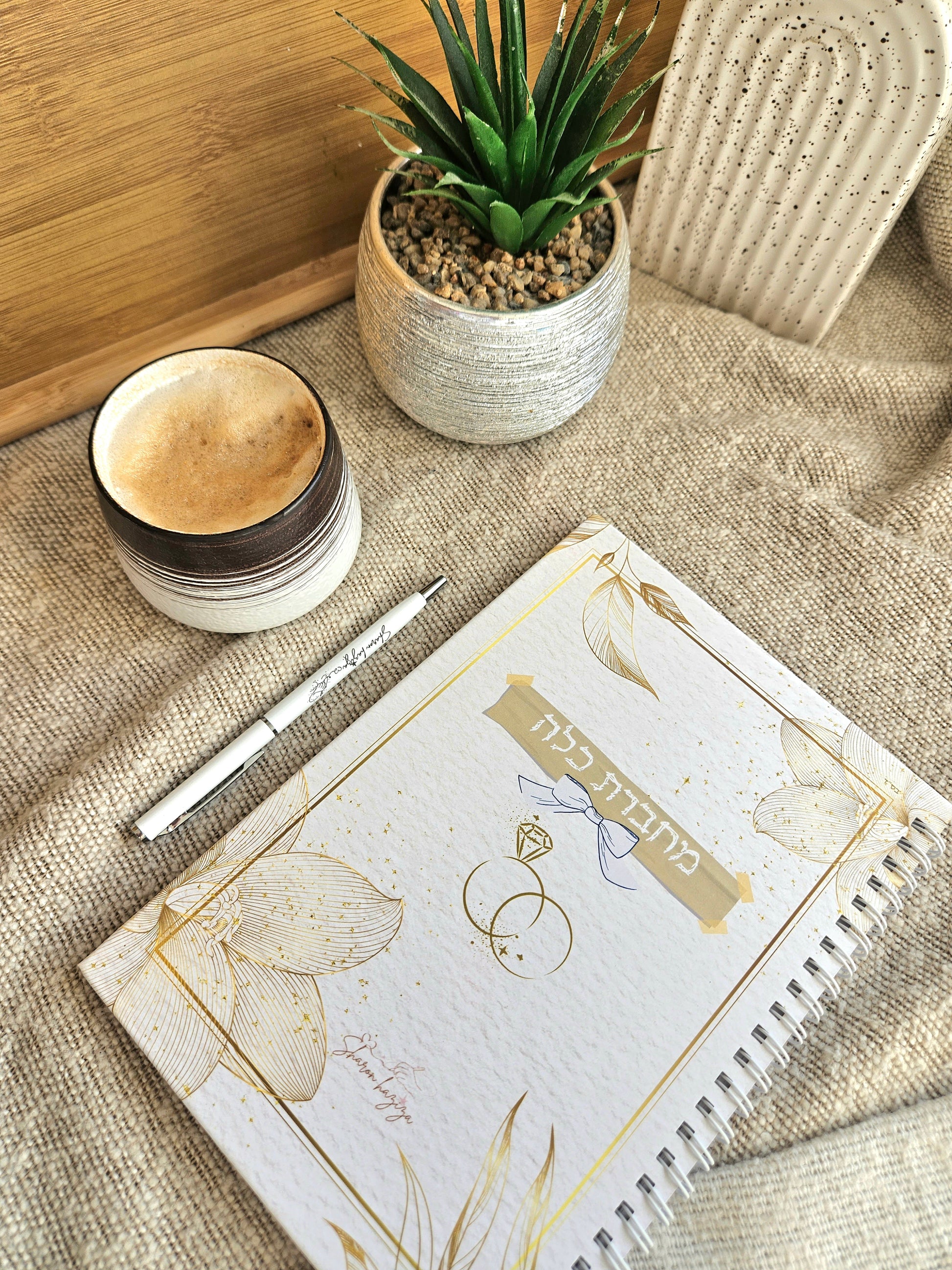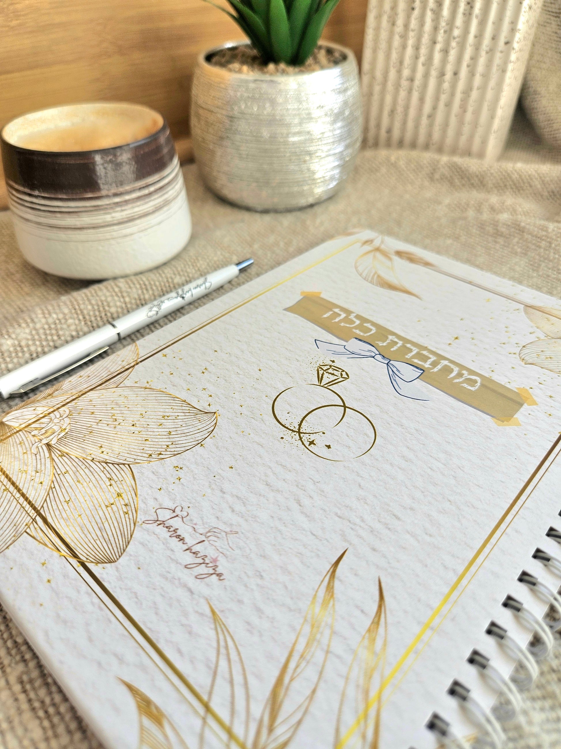 מחברת בעיצוב מרהיב, בגווני זהב ומראה יוקרתי, מושלמת לתיעוד חוויות, תכנון החתונה וכל רגעים החשובים שלך.