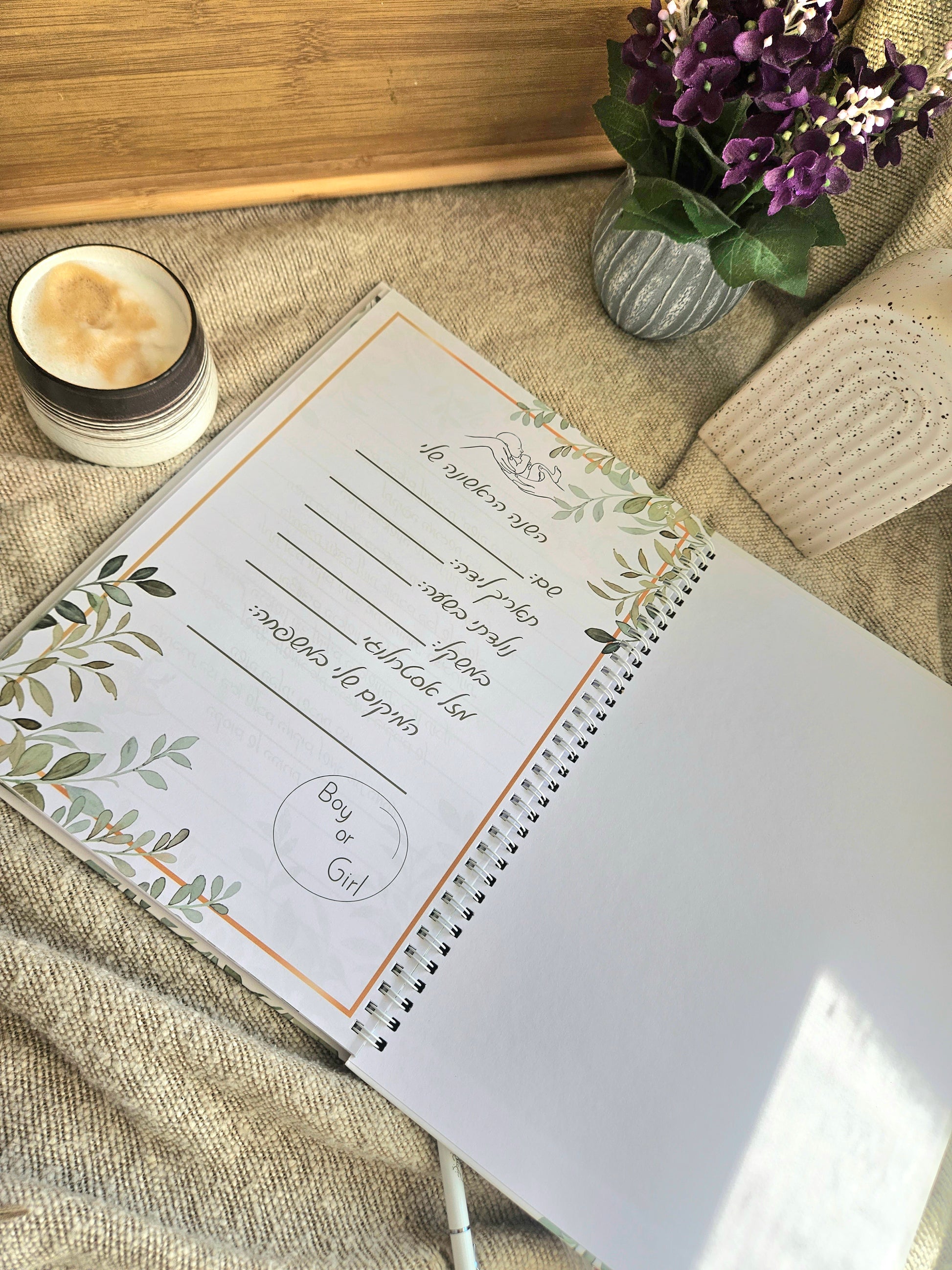 מחברת מעוצבת בקפידה בעיצוב יוניסקס שמתאים לכל תינוק ותינוקת. -